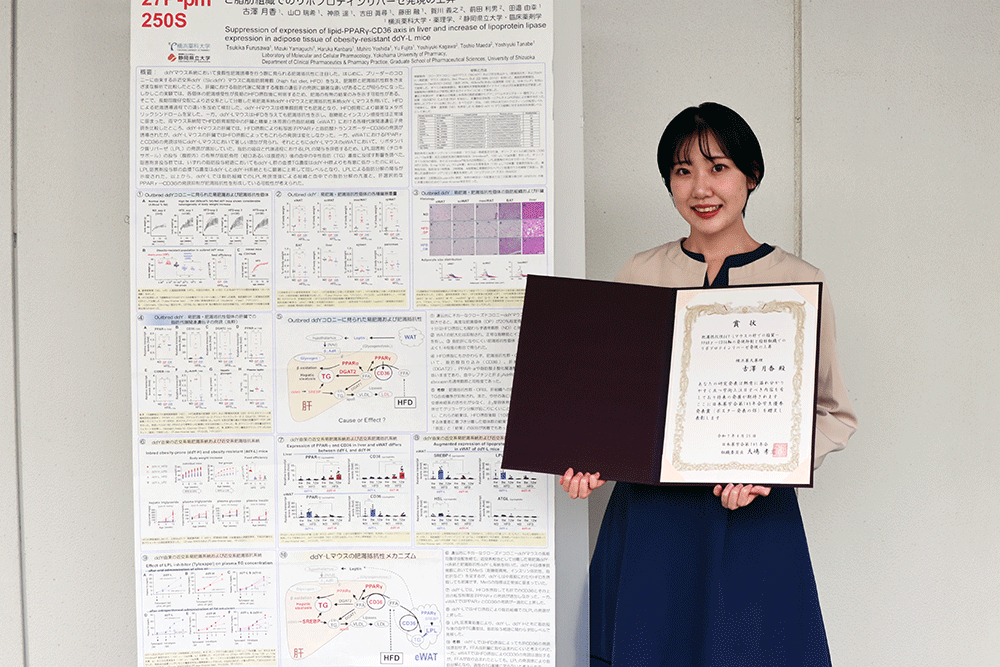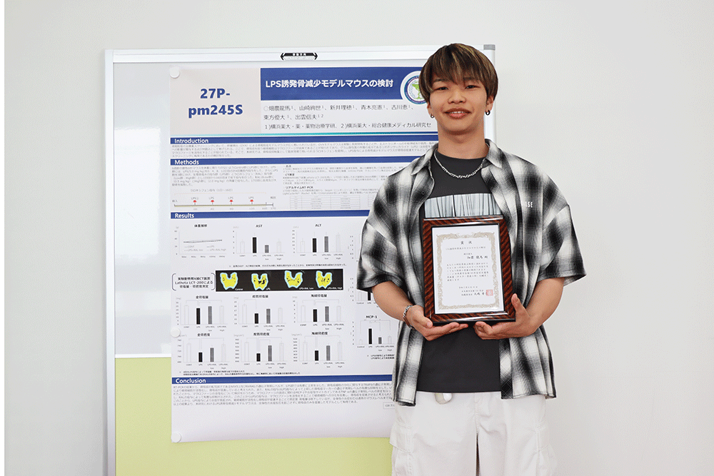 2025年3月26日~29に福岡県で開催された日本薬学会第145年会「薬学エコシステムの推進:異分野連携で拓く未来のイノベーション」において、審査対象1404件、受賞者272名の一般学術発表[ポスター発表の部]で、4人の学生が「学生優秀発表賞」を受賞しました。
